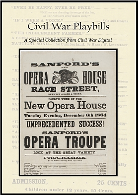 Civil War Playbills Collection (485 images). Civil War playbills provide historical insight into the era's theater, including performances by both professional companies in major cities and amateur groups of soldiers, reflecting the war's pervasive influence on American life. These playbills documented performances of popular comedies and dramas, and their survival provides valuable information about popular entertainment, casts, and even significant historical events like President Lincoln's attendance at Ford's Theatre, as seen in the April 14, 1865, playbills.